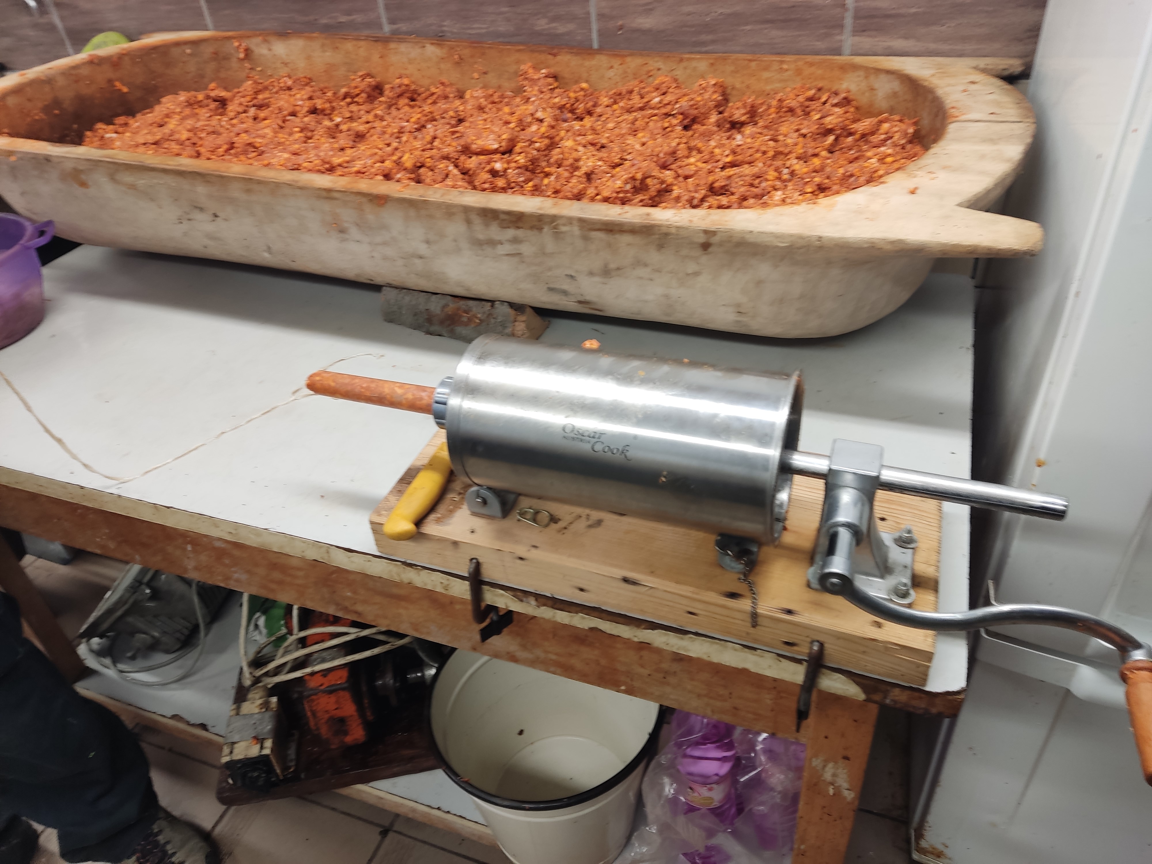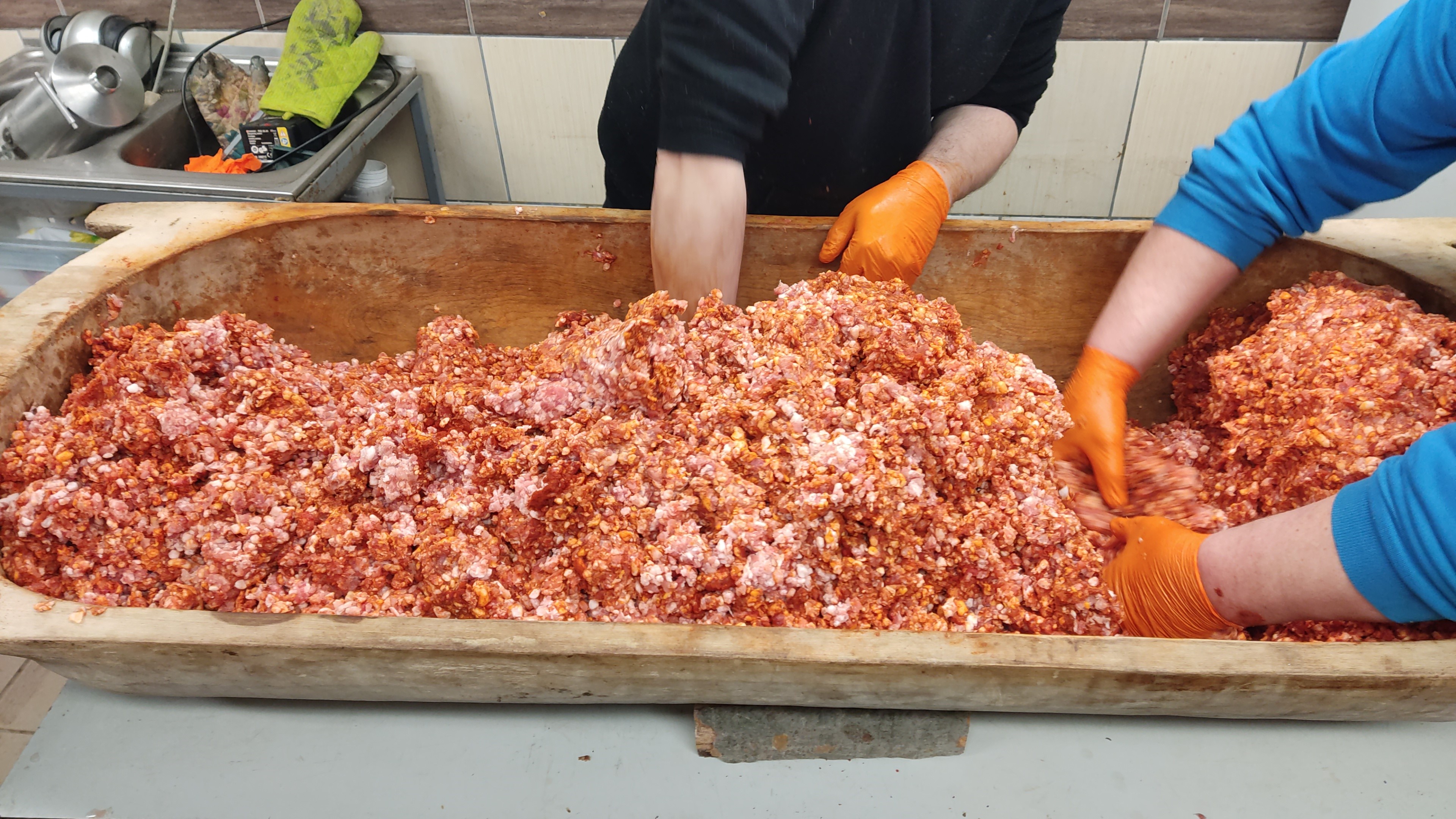 Opäť asi nebude ťažké rozlíšiť rozdiel v kvalite ručného miešania klobásy v koryte, kde zachytíme v ruke každú chrupavku alebo kostičku.