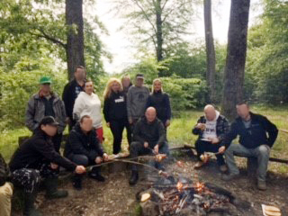 Výlet v máji bol spojený s opekačkou a všetkým, čo k tomu patrí. Klientov teda čakalo hľadanie suchého dreva na oheň, príprava samotného ohniska či vhodných ražňov na opekanie špekáčiku, cibuli, slaninky. Klienti sa naučili ako správne zakladať oheň.