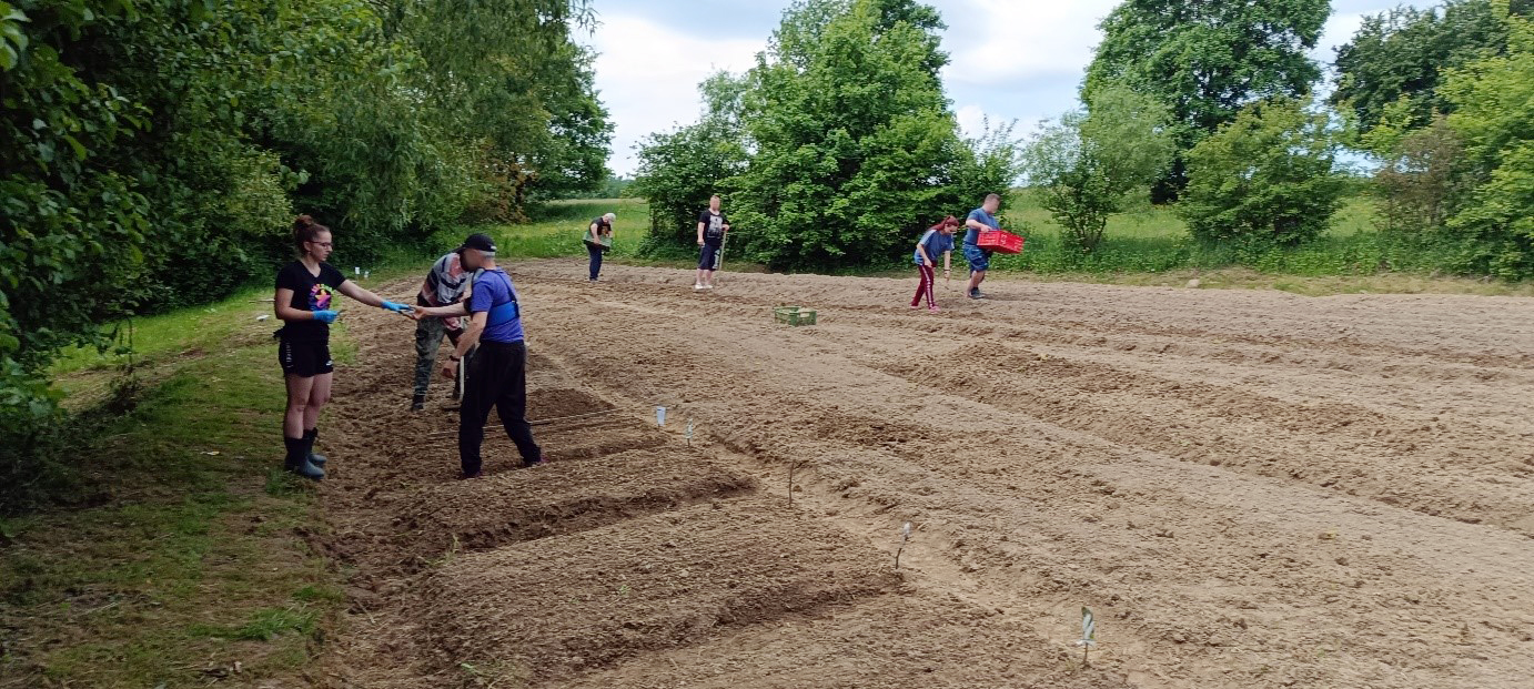 S klientmi nášho zariadenia sme sa jedno pekné ráno pustili do záhradky. Čakalo nás prichystané poorané políčko, kde sme mohli začať so sadením.